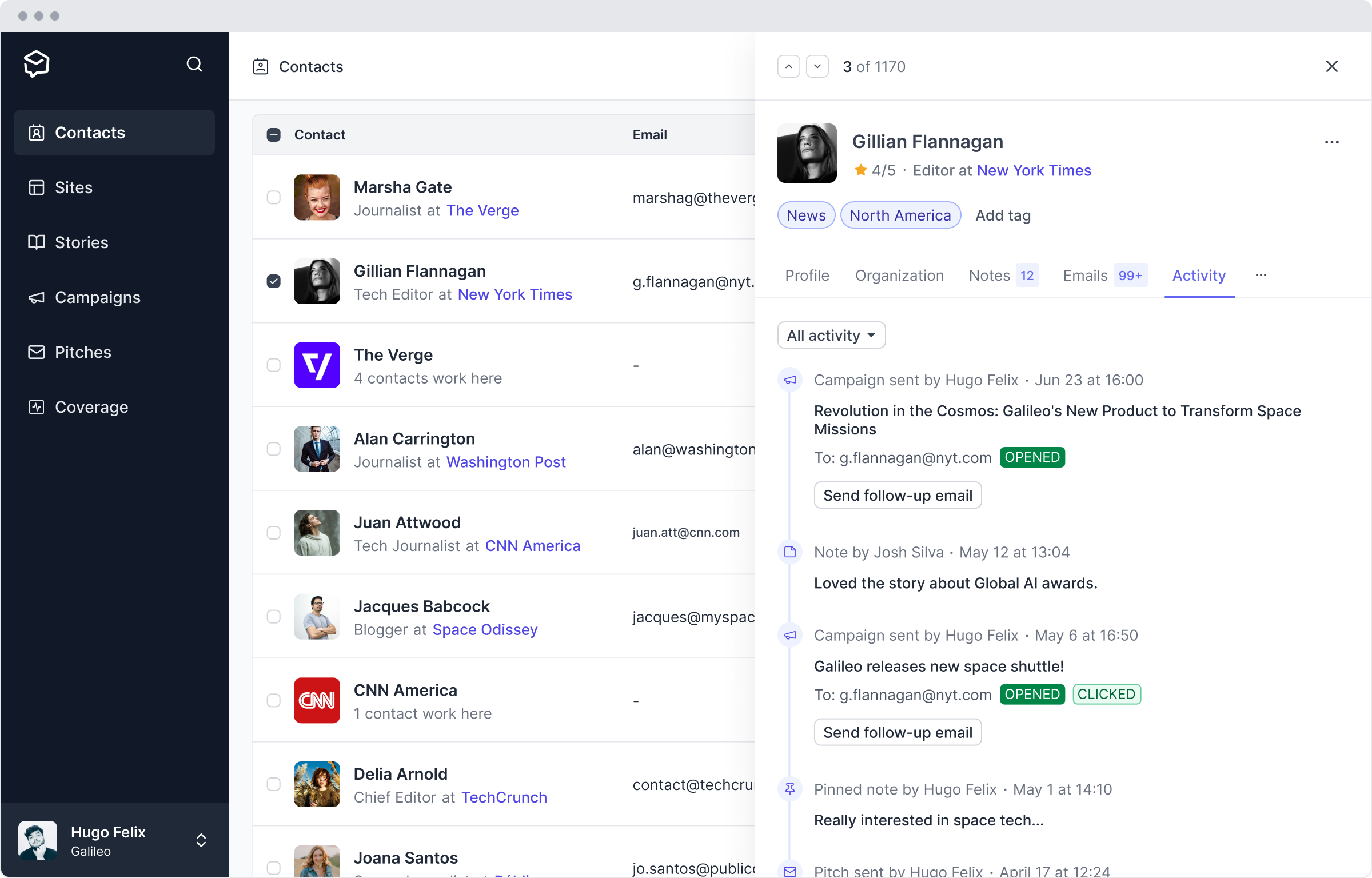 - Performance tracking: Get real-time PR analytics into who’s opening, clicking, and engaging with your pitches.